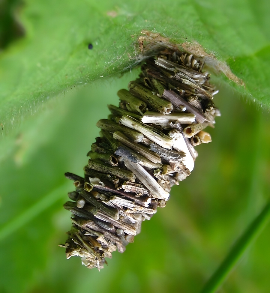 Основа чехла — это шелковая нить, которую вырабатывают шелковые железы, расположенные возле ротового отверстия. Работа эта непростая, ведь гусеница постоянно растет, а значит должна продолжать ткать свой мешок. Внутри кокона спокойно и уютно. Личинка тщательно следит за чистотой и состоянием воздуха.