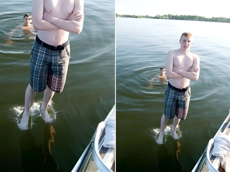 この不運な水泳選手が水の上に浮かんでいるように見えるので、この写真を見ると非常に混乱するでしょう。これが再臨ではないことは誰もが知っているにもかかわらず、この写真を撮影した創造的な方法は印象的です。