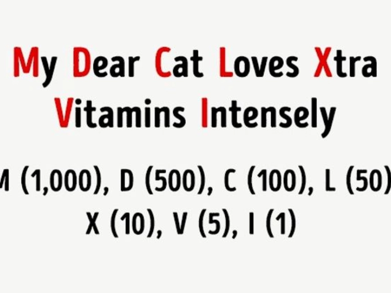 記憶ゲーム 「ええ、親愛なる彼女はエクストラビタミンを激しく愛しています」というフレーズを使用すると、ローマ数字を覚えるのに役立ちます。ローマ数字は、M(1,000)、D(500)、C(100)、L(50)、X(10)、V(5)、I(1)の順に単語の頭文字で表されます。 。 Post navigation この世界への反応がプライスレスである 24 匹の芸術的な動物 調理前に決して洗ってはいけない5つの食品と、必ず洗った方がよい5つの食品 1 2 3 4 5 6 7 8