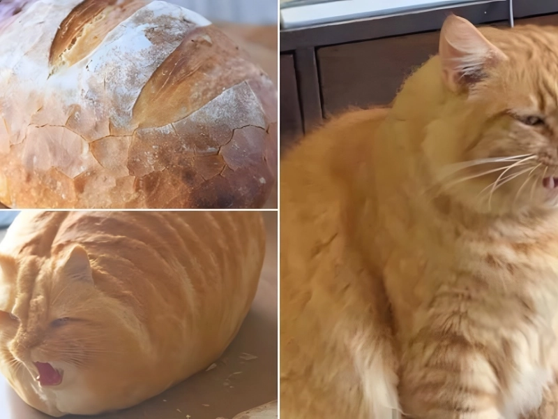 片側には、太り過ぎで怒り狂っているように見えるオレンジ色の猫がいて、現在ご褒美を求めてニャーニャー鳴いています。反対側にはパンの塊があります。これらを組み合わせると、炭水化物だけでできているとしても、おそらくグリニーを求めて泣き止まないであろう怒り狂ったパンの塊ができあがります。