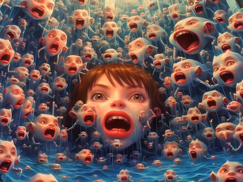 このプロンプトは誰が作成したのでしょうか? 一体どうしてこのようなことが起こるのでしょうか? 私たちに言えるのは、この街は涙を流しているということだけです。洪水に見舞われた大都市の中心部の真ん中に、叫び声を上げ、泣いている頭が 1 つあります。