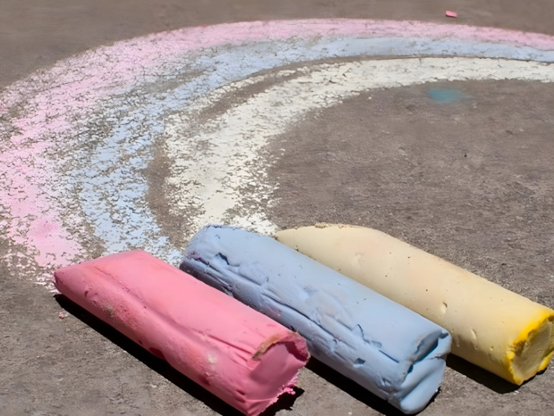 スティックチョークを作るには、大さじ1杯の卵殻粉が必要です。小さじ1杯の小麦粉と小さじ1杯のお湯を混ぜます。ペーストを作ったら、食品着色料と卵の殻の粉末を加えて混ぜます。歩道アートを作成するには、混合物をスティック状に成形し、ペーパータオルの細片で丸め、1 ~ 3 日間硬化させます。