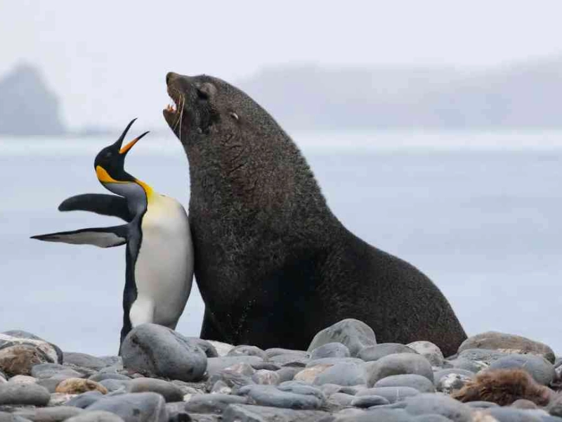 アザラシとペンギンの胸部衝突 ComedyWildlife/Thomas Mangelsen