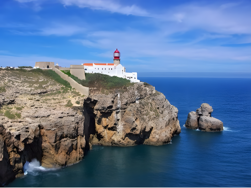 サグレスは、ポルトガルとヨーロッパ大陸の境界の湾に位置する小さな都市です。ここでは、息を呑むような岩の近くの美しい糸でくつろぐことができます。