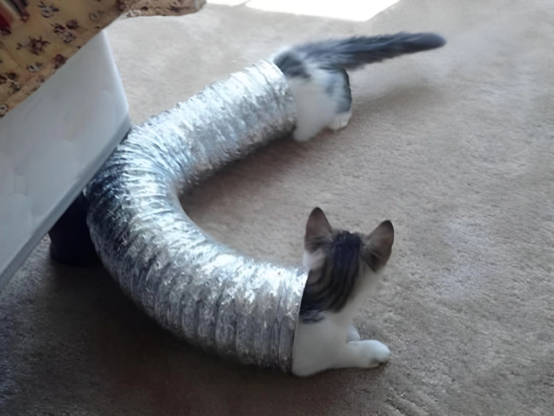 ペットは私たちに無限の楽しみと、たくさんの陽気な写真を撮るチャンスを与えてくれます。何事にも好奇心を持っているように見えることから、子猫と子犬は間違いなく最も冒険好きな動物です。この目の錯覚の写真は、子猫がとても長いという印象を与えます。