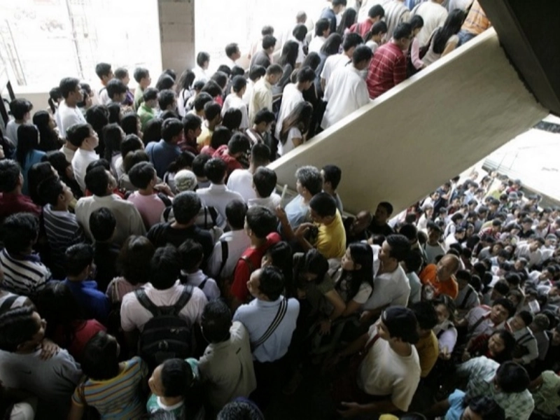 2008 年に始まった経済不況とその後の燃料価格の高騰により、公共交通機関を利用する個人が増加しました。画像には、混雑した通勤電車の駅に肩を並べて近づいてくる何百人もの人々が写っています。