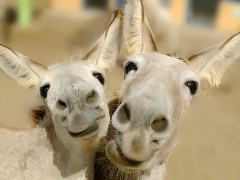 Blue Iris が撮影したこの画像には、のんびりと満足そうな、陽気なクリーム色のロバのつがいが写っている。なぜそう見えるのだろう? 彼らは馬ではないのだから。このかわいい写真では、この 2 頭の親友が仲良くカメラに向かってポーズをとっている。