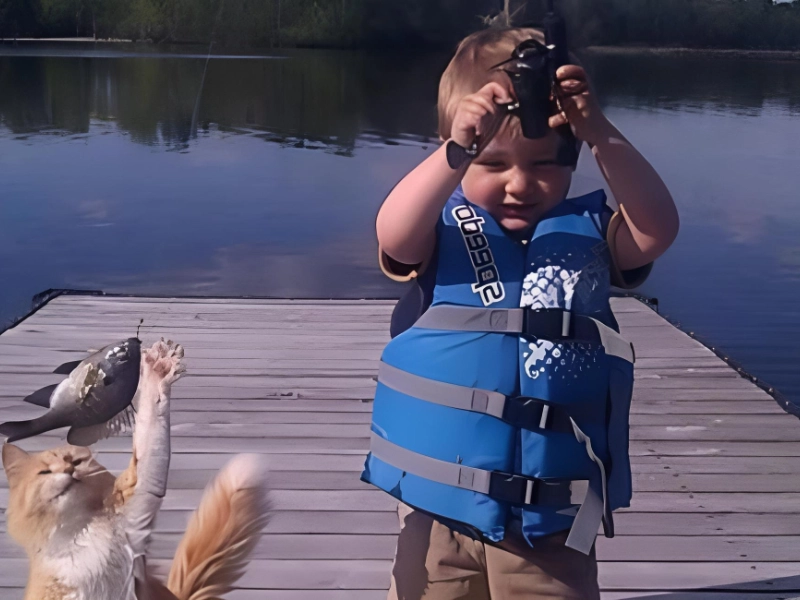 写真の中のこの幼い子供は、猫について、そして猫がどのようにあなたの業績を気にしないのかについて、厳しい教訓を学ぶことになります。この獰猛な猫が秘蔵の魚をつかみ、おいしいおやつを求めて走り去るまでの距離は、わずか数ミリです。