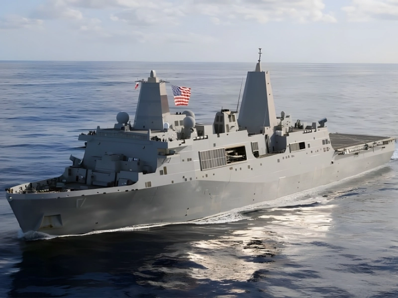 USS サンアントニオは、多用途性と多任務能力に対する米海軍の取り組みの証です。このクラスのネームシップとして進水したこの水陸両用輸送ドックは、ノースロップ グラマン シップ システムズによって建造され、2006 年に就役しました。海兵隊を水陸両用攻撃に展開することに重点を置いて設計された LPD-17 は、およそ 800 人の兵士と、必要な車両や装備を運ぶことができます。USS