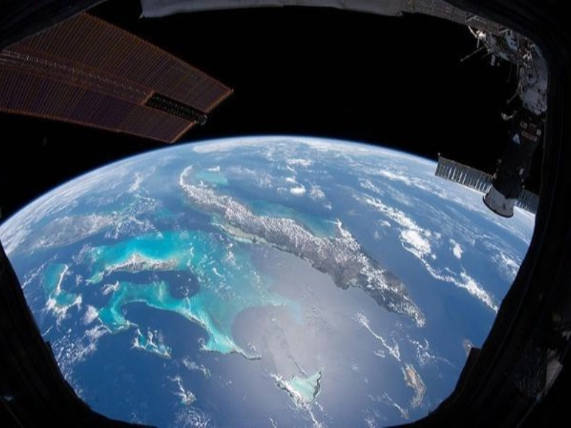 NASA ジョンソン宇宙センターの地球科学とリモート センシング部門カリブ海と大西洋は、バハマ、キューバ、ジャマイカ、フロリダ南部を取り囲んでいます。