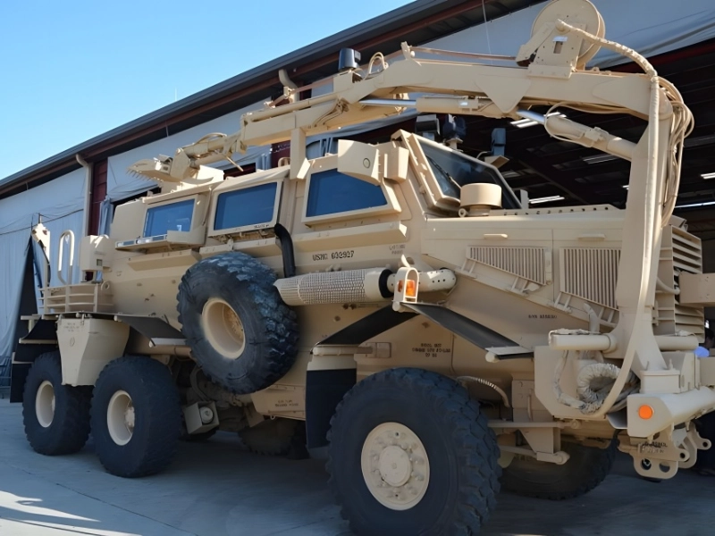6 輪のバッファロー地雷除去車両は Force Protection によって製造されています。これはフォース・プロテクション社が製造した最大の車両であり、オセロットとクーガーがこれに続きます。バッファローは、すべてのホイールと同様に、センターラインから地雷が保護されています。バッファローの最低地上高は 15 インチです。