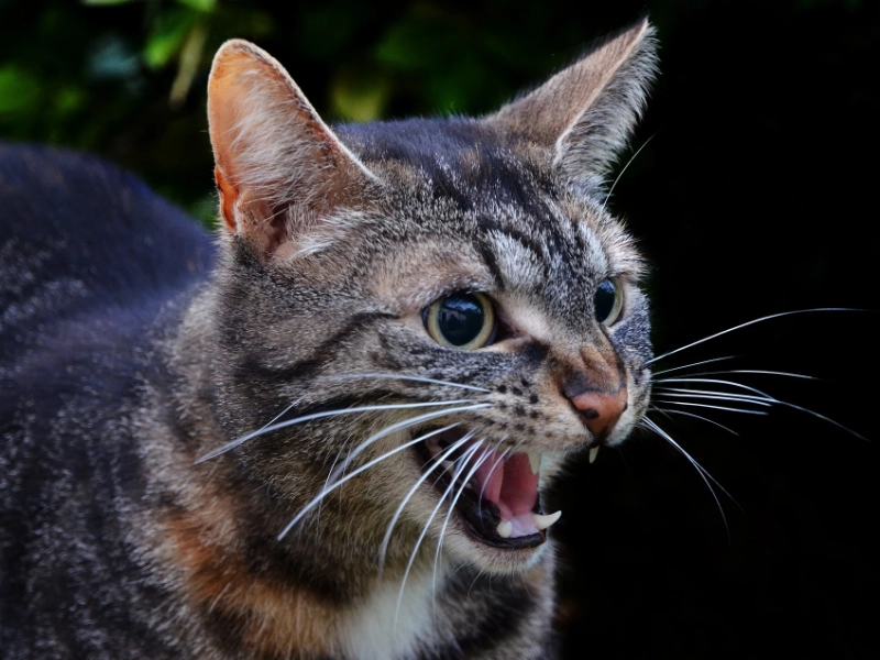 猫は脅威を感知したり恐怖を感じたりすると、シューッという音やうなり声といった防御行動をとります。これらの危険信号は、猫が放っておかれたいので近寄るべきではないことを示しています。彼らの境界を尊重し、彼らが撤退できる安全なエリアを提供してください。