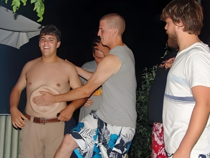 肥満による悪影響とは別に、自然にふくよかな人は魅力的です。友達同士が体重に関係なく、笑いのためか純粋に楽しむためか、冗談でお互いをつついたり平手打ちしたりするのはよくあることです。この写真の友人のように、平手打ちできる丸いお腹をしている友人の場合、これは特に当てはまります。
