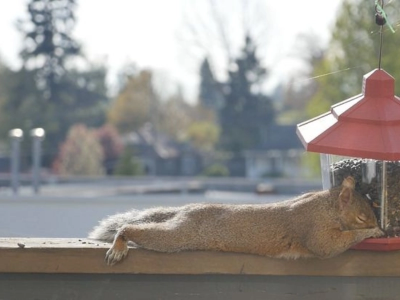 「私のガールフレンドはデッキに鳥の餌箱を置きました。この悪党は寝るために自分自身を食べました。」