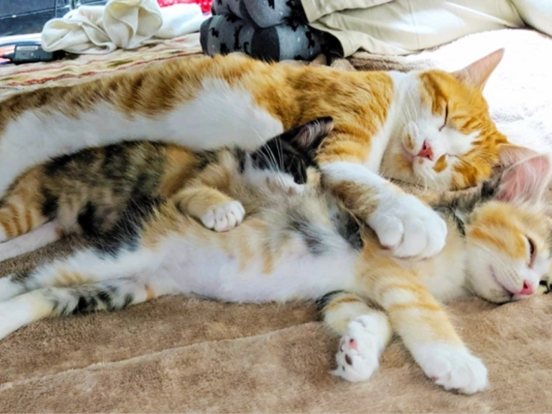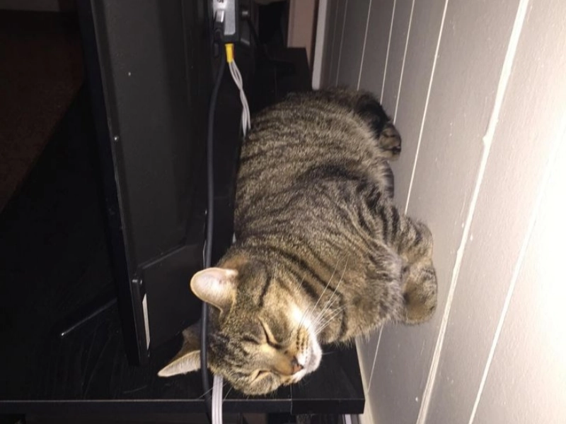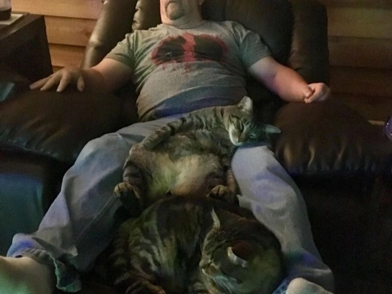「うちの猫の一匹は夫と同じ姿勢で寝ています。夜は二人ともテレビを見ながら眠ってしまいます。」