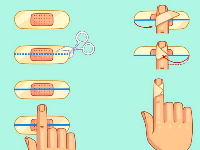 2つの粘着性のある端を半分に切り、指の上で十字に交差させます。細心の注意を払う必要がなくなりました。