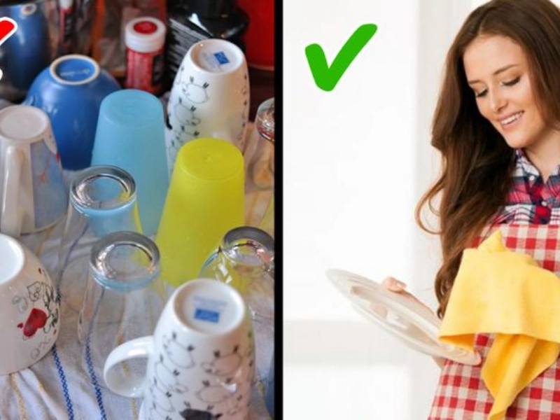 食器を逆さまにして乾燥させるとカビ臭が発生する可能性があります。すべてのものを横に置くことも、ペーパータオルで拭くだけでも大丈夫です。