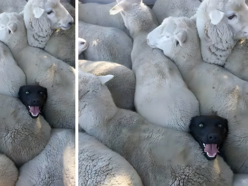 犬が仕事に行かなければならないと不平を言っても、聞き入れられません。この写真では、この満足そうな子犬がまさに中心にいて、一瞬たりとも迷うことなく羊を正しい目的地に導いている様子がわかります。