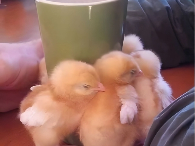 ひよこには羽がないので、体温を調節して暖かくすることができません。通常は母親に頼って暖を取ってもらいます。一方、この写真では、この赤ちゃんたちは温かいコーヒー マグで表現されています。