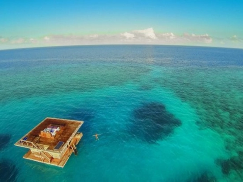 このホテルの最も豪華な客室の 1 つは、巧妙な浮遊構造の一部として水没しています。そのため、そこにいる間は海の環境を満喫し、窓の外を泳ぐ魚を眺めることができます。