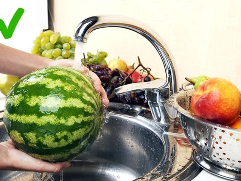 どれだけ上手に皮をむいたとしても、皮膚の細菌は食事の可食部分に侵入してしまいます。このため、バナナ、メロン、スイカなど、皮が食べられない果物や野菜は食べる前に必ず洗う必要があります。