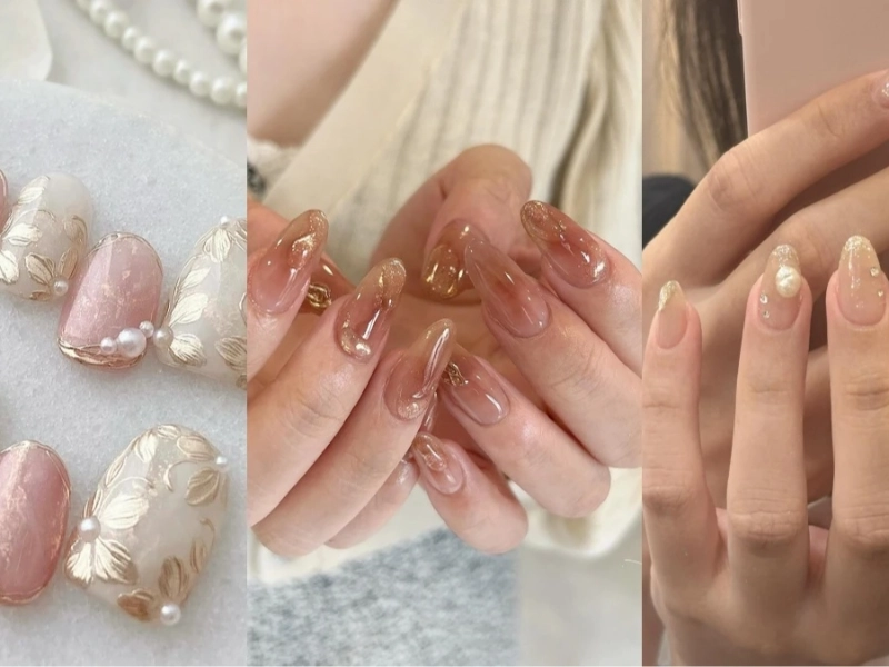 Current bridal nail art adopts simple lines and sophisticated geometric patterns, therefore producing a design that is both current and agelessly exquisite. Usually in light beige, pastel pink, or cream, this style starts with a precisely placed neutral base color—the ideal canvas for exact metallic embellishments. Using specialized thin brushes or nail tape, nail artists construct perfect geometric forms including delicate triangles, exact lines, hexagons, and complex diamond patterns. Depending on the bride’s bridal jewelry and overall color scheme, the metallic accents usually run in rose gold, standard gold, or silver. Every nail can have a somewhat distinct geometric aspect, resulting in a coherent yet variable appearance over all ten of them. The arrangement of these motifs is quite important; much attention should be taken to make sure the patterns compliment rather than overpower the natural nail shape. Many brides choose negative space motifs inside geometric patterns to offer even more modern appeal and refinement. A premium gel top coat that accentuates the metallic components and offers long-lasting wear seals the final look. Fashion-forward brides who want their nail art to mirror modern design aesthetics while yet keeping bridal grace will find especially appealing this approach.