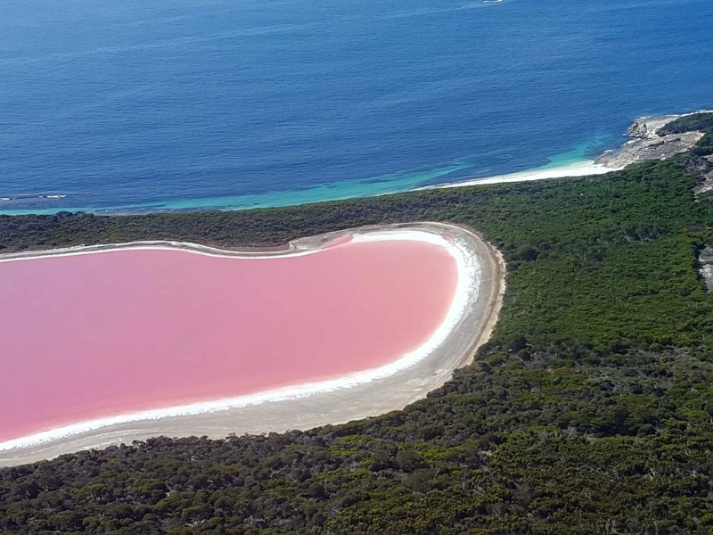 1. Lake Hillier’s Helicopter View, Middle Island, Australia