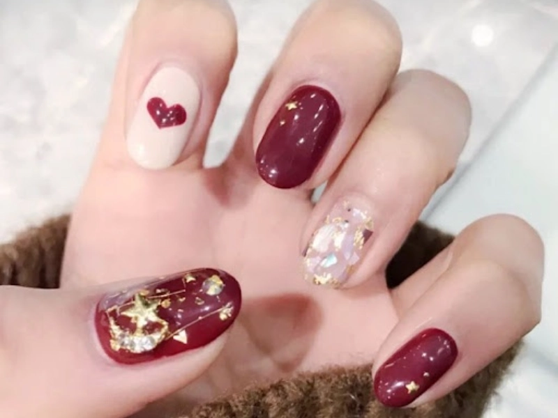 Regarding designing the ideal atmosphere for romantic meetings, your nail art should accentuate the mood while yet keeping elegance and appeal. Though the foundation colors are deep burgundies, rich purples, and sophisticated reds, the execution and minute touches that improve the whole appearance are what count. Think of adding subdued sparkle with metallic accents or small glitter gradients to elegantly catch candlelight without overwhelming effect. Heart-inspired designs with subtle rose gold accents or negative space methods can add romance without being unduly cliche or obtrusive. Add complex details like velvet-textured finishes or chrome powder treatments to provide visual intrigue and depth. For a modern twist, try adding little dried flowers sealed under clear gel for a natural, romantic touch or explore magnetic polish effects creating captivating patterns. Layer several finishes and textures to add dimension; maybe a glossy base with matte accent details or vice versa. The length should be sophisticated but useful so that dinner or other private events allow for both beauty and utility. When choosing colors and designs, keep in mind the season and environment of your date; lighter, airier designs for summer evening dates and more dramatic, richer looks for winter romance.