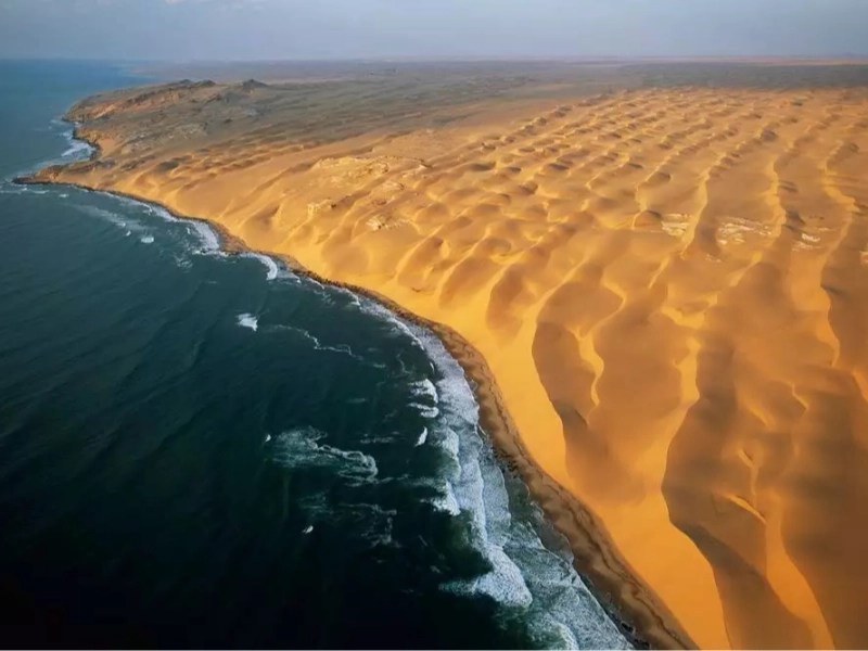 The spectacular colour changes of the Namib Desert’s terrain over the day produce an amazing natural light show for guests. Different minerals in the iron-rich sand reflect different wavelengths of light, which causes the desert to change from pale pink at sunrise to deep red at noon, and dazzling orange at sunset. The angle of sunlight and meteorological circumstances help to intensify this phenomena, resulting in an always shifting canvas that photographers and painters find appealing. The middle area of the desert exhibits most dramatic colour fluctuations since the highest concentration of iron oxide in the sand produces the most strong red tones.