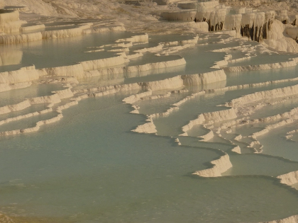 Pamukkale’s travertine plateaus mark the last great geological marvel of this amazing place. The deposition of mineral deposits over thousands of years produces these large flat surfaces that provide raised platforms with amazing vistas of the surrounding terrain. Shallow lakes and a sophisticated network of micro-terraces on the plateaus produces delicate patterns seen from above. These plateaus, according to scientific investigations, keep expanding both vertically and horizontally under continuous mineral deposition. Different rates of mineral precipitation and water flow provide distinctive textures and patterns on the surface of the plateaus. Studies have shown that the hydrology of the site depends much on the plateaus, which function as natural water distribution networks preserving the whole ecology. Important geological and archaeological data, including old human relics and fossilised plant elements, also finds preservation on the plateaus. Modern conservation initiatives concentrate on preserving these fragile landforms while enabling regulated access for tourists and scientific research.