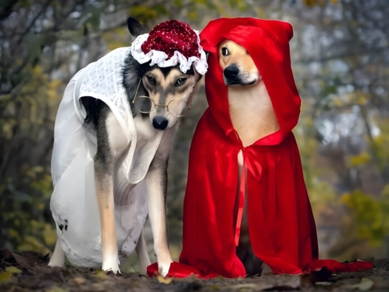 With amazing success, this captivating pair has taken the beloved story of Little Red Riding Hood into the canine realm. With each dog flawlessly cast in their respective parts, the costume synchronisation between these two dogs is just amazing. While their friend effectively becomes the Big Bad Wolf, replete with suitable costume details that accentuate their natural characteristics, the smaller dog, sporting the traditional red cloak and hood, portrays the innocent appeal of the protagonist of the tale. This combination is especially remarkable since it seems so natural; as if these roles were destined for these particular dogs all along. From the correctly sized hood to the wolf’s deftly created look, the costumes themselves exhibit amazing attention to detail. However, their dedication to their characters—their poses and gestures imply they are not merely donning costumes but rather totally embracing their fairy tale roles. This one of the most unforgettable pet Halloween costumes of the season since the relationship between the two dogs gives the whole presentation more added appeal.