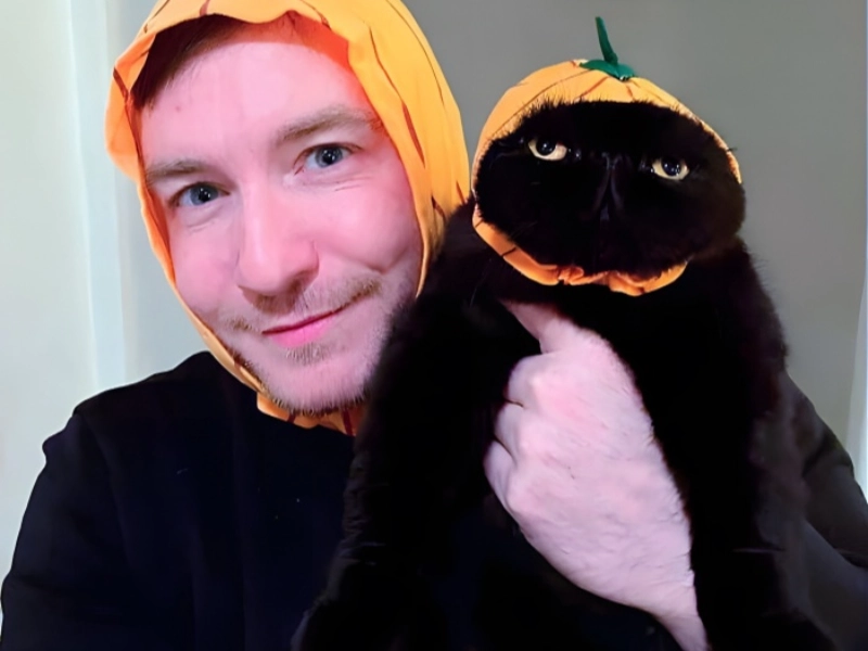This funny exhibition of the traditional Halloween contradiction shows the ideal portrayal of the continuous conflict between Halloween aficioners and their hesitant friends. On one side, we have the classic Halloween lover, a human glowing with festive excitement and obviously delighted with the chance to coordinate costumes with their feline buddy. The picture captures the essence of this dynamic exactly. When you look at their cat, whose attitude has reached until unheard-of levels of contempt that somehow exceed the typical feline contempt, the contrast is quite arresting. The cat’s grumpiness is so remarkable that it even circles back to be very beautiful, producing an inadvertently ideal Halloween photo. Anyone who has ever tried to outfit a hesitant pet will find resonance in the humorous masterpiece created by the juxtaposition of the owner’s excitement and the cat’s obvious discomfort. Though the cat seems to object, their sour attitude really makes the costume more appealing, showing that occasionally the most reluctant collaborators create the best Halloween memories.
