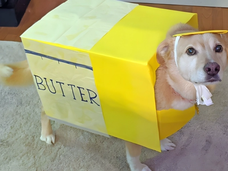 This wonderful show of foster family commitment has turned this cute puppy named Butter into the most appropriate costume ever made. The innovative play on the famous expression “butter wouldn’t melt in their mouth” aptly describes the sweet character of the dog as well as their chosen moniker. The costume itself exhibits remarkable attention to detail, with its soft bright colours and flawless texture exactly echoing its dairy namesake. The deeper significance of this costume—that it symbolises not only a clever Halloween attire but also the loving inclusion of a foster pet in family customs—makes it especially unique. The attempt of the foster family to incorporate their temporary family member reveals a great degree of their concern for animal welfare. The dog’s subdued manner and easy fit in the suit aptly capture the phrase they are depicting, therefore producing a costume that is both witty and endearing. This poignant show reminds us that Halloween can be about forging important memories with every family member—including the transitory ones.