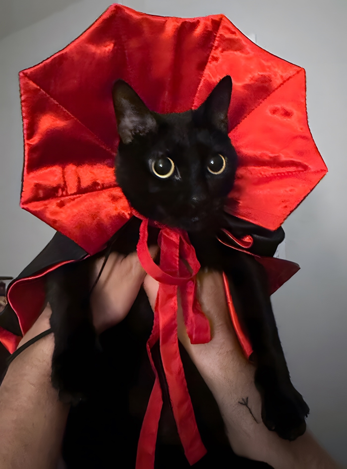 While we have to congratulate this person on creating such an amazing Halloween costume for their cat, we do have to question how they got this outfit on their kitty without being scratched to smithereens in the process.
