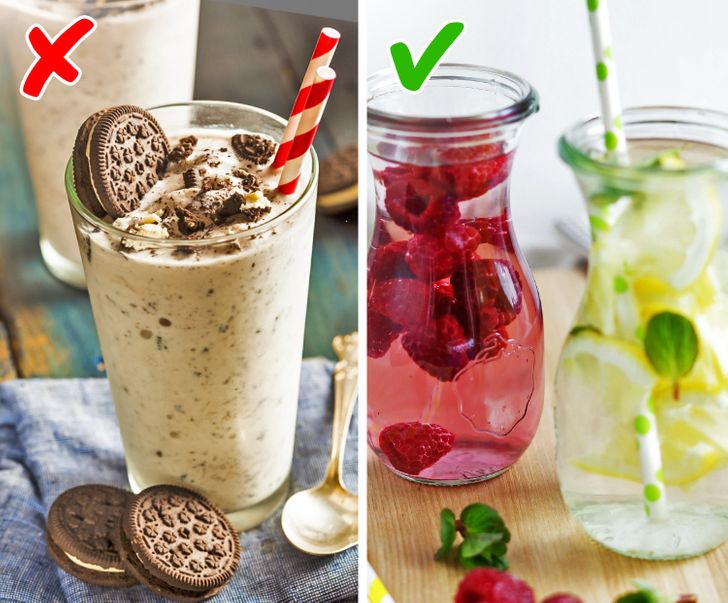 Do this instead: drink water! If you can’t stand the blandness of plain water, try adding lemon wedges, your favorite berries, or mint leaves to it to give it some taste. Unsweetened green tea is also a good beverage option.