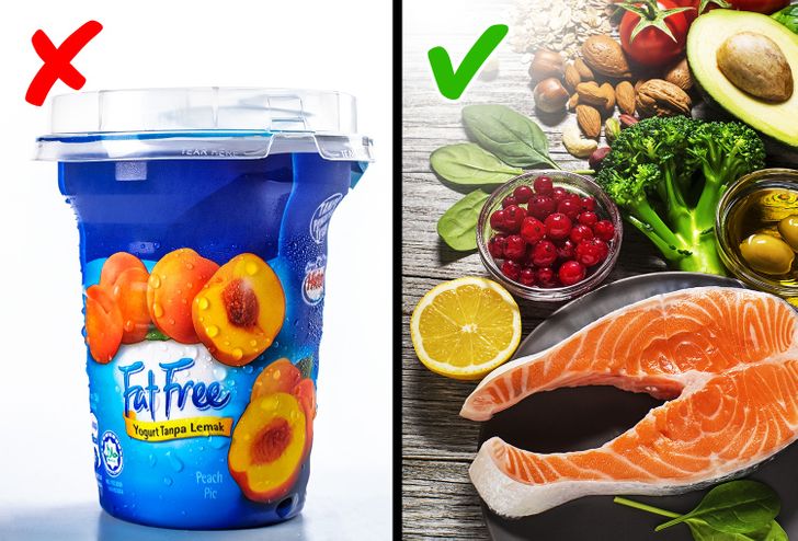 Do this instead: choose minimally processed and unprocessed whole foods — both those that are naturally low in fat and those that contain healthy fats. If you must buy something low-fat or fat-free, read the nutrition label to make sure the product isn’t loaded with sugar or additives and is actually lower in calories than its full-fat counterpart.