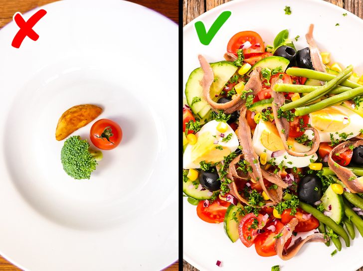 Reducing portion sizes is one of the most common pieces of advice for people trying to lose weight. When done right, it really works. However, you should never eat portions so tiny that you’re constantly feeling hungry. First, it’s obviously unhealthy. And second, when your calorie intake is too low, your metabolism slows down in trying to preserve limited energy, making it harder for you to lose weight.