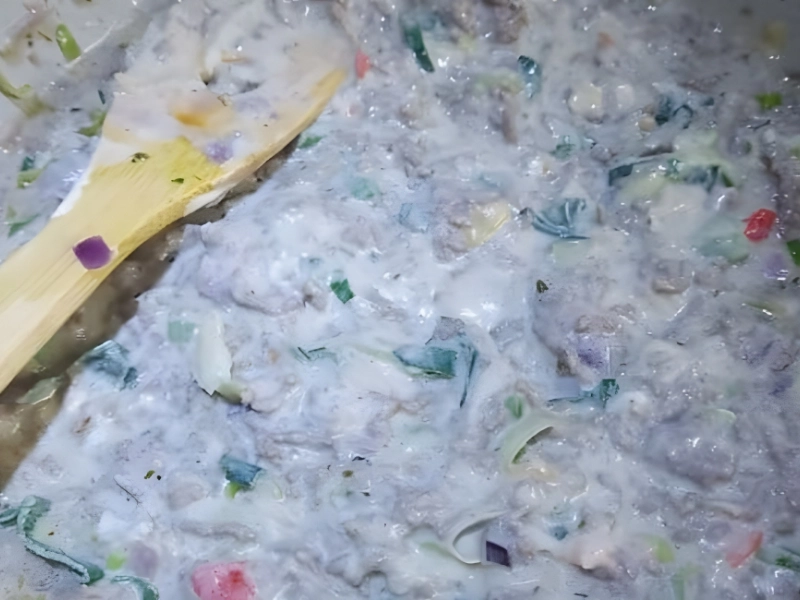 The person who shared this claimed that her partner was trying his hand at making chicken carbonara for the first time. He certainly gave it a shot, but it appears like something went wrong at some point.