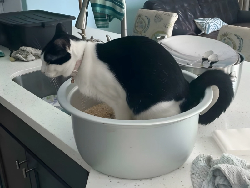 This cat was so rude, nasty, and cat-like—that’s what it did to this saucepan of raw rice. It’s not uncommon for cats to mistake certain textures for litter, especially if they’re not satisfied with their current litter box or are simply exploring. The texture and small, granular nature of uncooked rice can easily be mistaken for cat litter by a cat. To the cat, it was just another place to do its business.