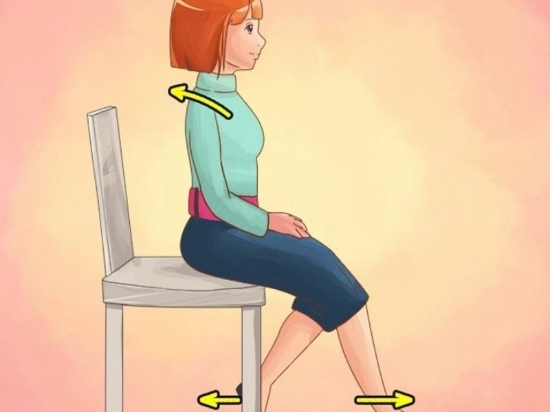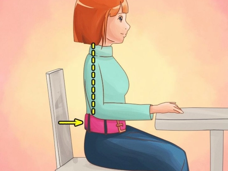 Your back and stomach muscles work in tandem to maintain your posture. Maintaining abdominal tension causes your back to naturally straighten. A wide belt, a high-waisted skirt, or pants will help keep your abdominal muscles in the right position.