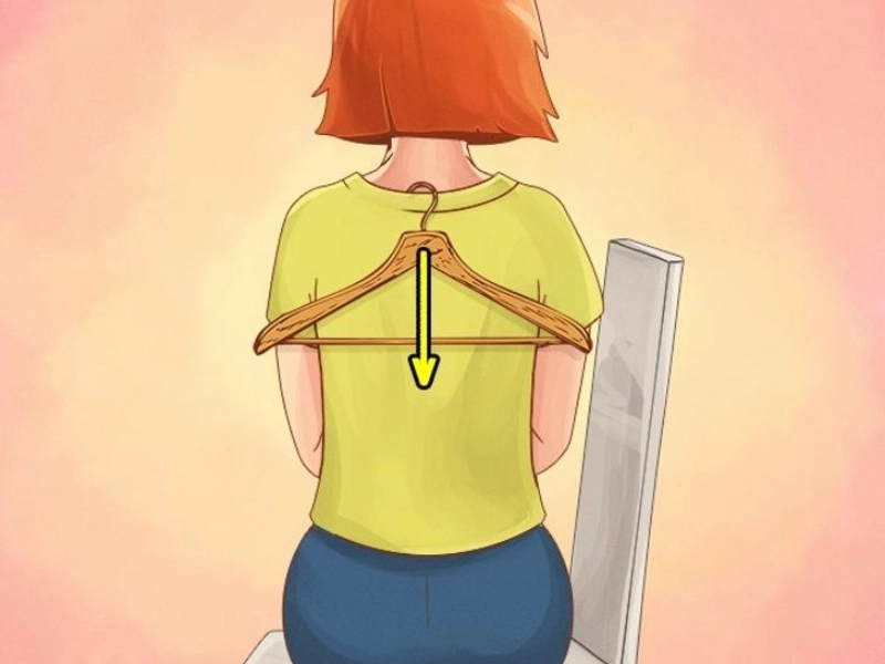 Hang something from your back while using a computer to make sure your spine remains straight. Any ordinary clothes hanger will do.