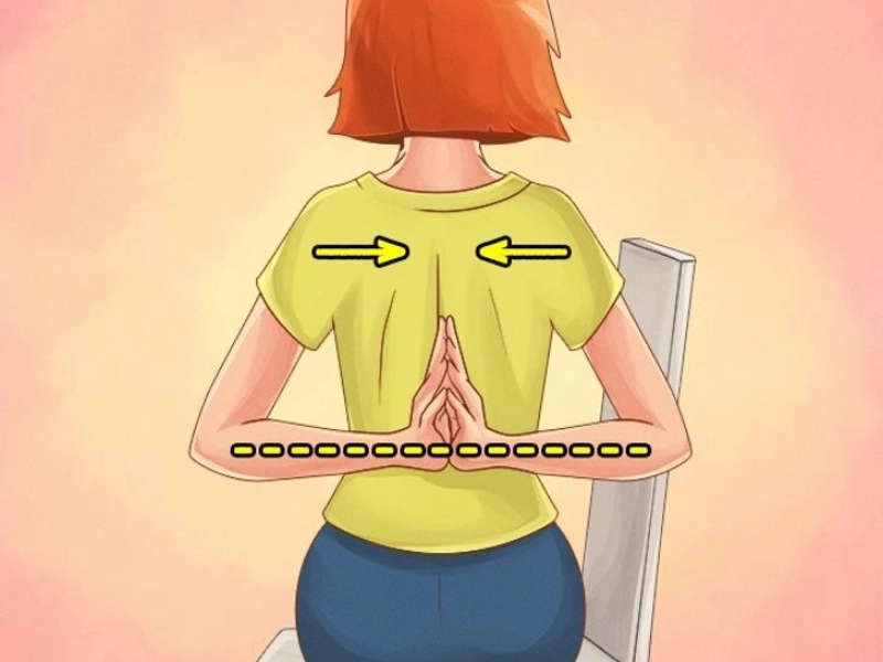 Put your hands behind your back and interlace them such that they resemble the image above. From one elbow to the other, your arms should form a straight line. Your shoulder blades ought to converge. For ten seconds, maintain this posture.