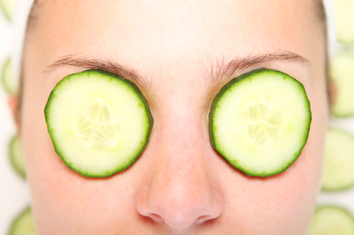 If your eyes are red and puffy, take 2 thin slices of cold cucumber, lie down, and put a slice over each eye for 30 minutes.