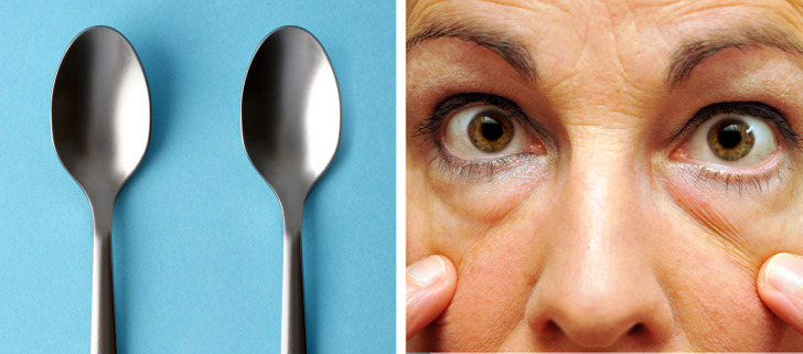 Take 2 metal teaspoons and put them in the refrigerator. After they get chilled, place the bowls of the spoons over your eyelids for 30 to 60 seconds. The cold of the metal will help revive the tired eyes and make you feel refreshed.