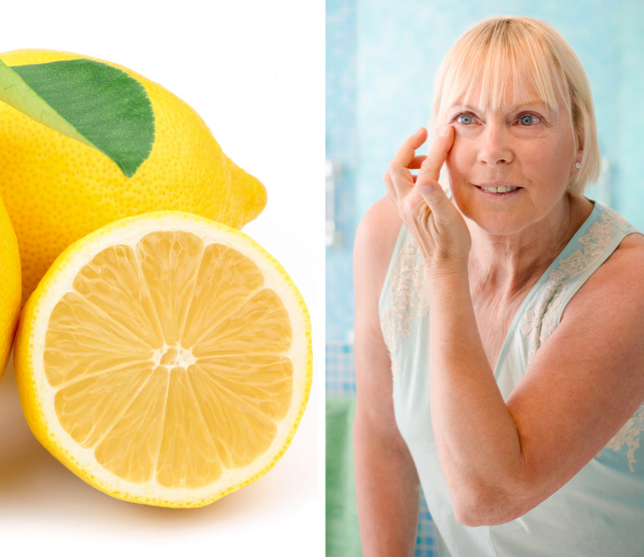 Massage the juice of 1 lemon into the fine lines and wrinkles on your face before you go to sleep. The acidity of the lemon reduces the appearance of wrinkles and makes the skin appear brighter.
