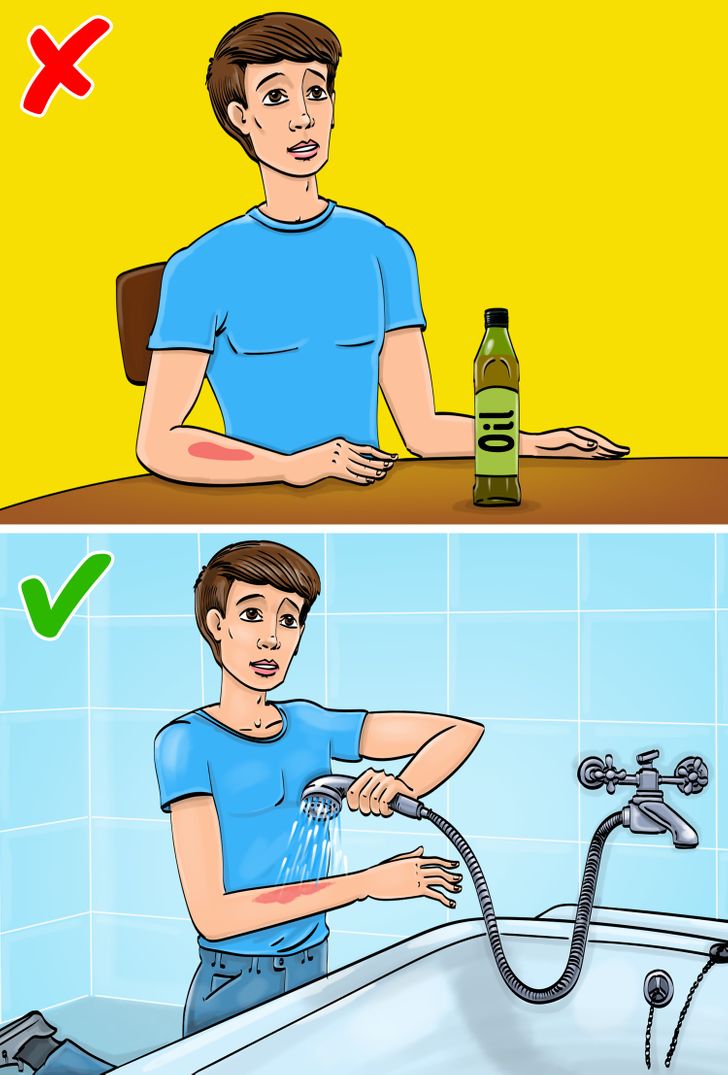If there is a slight burn without significant tissue damage, it’s important to rinse the skin with water for 20 minutes. Apply a sterile bandage and place ice or anything cold on top. When everything is done, you should call a doctor.