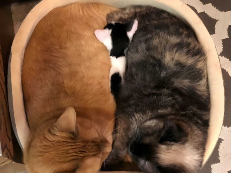 Pet owners all across are still amazed by the universal truth about animal behaviour shown by the interesting dynamics of pet sleeping arrangements. Our animal pals always tend towards sharing sleeping quarters, even if we invest in several opulent pet beds, blankets, and cushions. This creates wonderful images of interspecies hug puddles. This specific situation highlights a typical occurrence in multi-cat homes, where the addition of a new family member causes wonderfully disruptive disturbance of the established hierarchy and sleeping arrangements. The two older cats had already idealised their sleeping arrangement in their selected bed, so establishing a comfortable schedule fit for them. But the arrival of their new brother brought an unanticipated but lovely evolution. Driven by instinct for warmth and protection, the small kitten showed amazing will in locating itself rather literally among the family. The kitten not only guaranteed the warmest and safest place by wedging himself between his larger siblings but also strengthened his place in the family’s social hierarchy. This behaviour shows the intrinsic need for physical contact and security that cats preserve from kittenhood, therefore demonstrating that occasionally the best things in life come in small packages.
