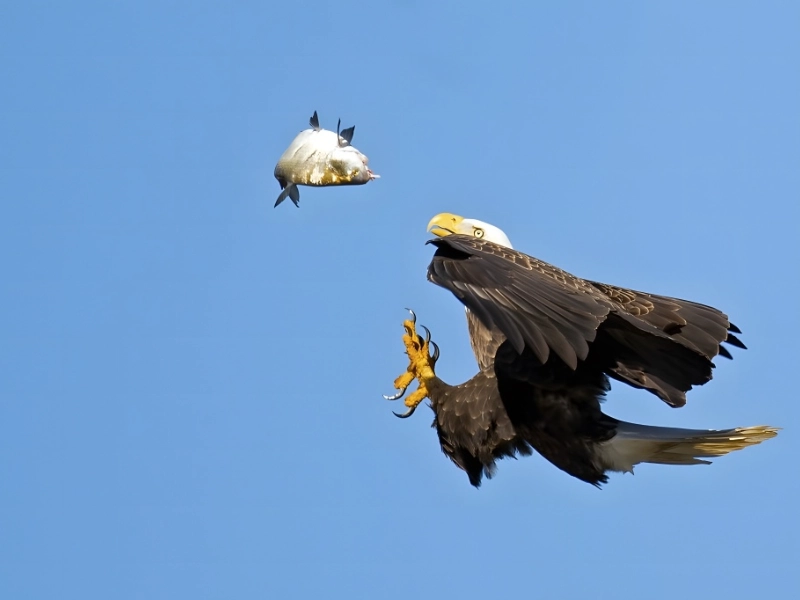 The eagle evidently didn’t understand that toying with its prey is not a wise move. This amazing picture catches an unexpected action from one of the most powerful predators in nature. Though their hunting skills and elegant behavior are well-known, this picture seems to catch one in a less grandiose, almost lighthearted moment. The scene probably shows an eagle interacting with its victim in a way more like a cat toying with a mouse than the quick, effective murder we usually connect with these raptors allow. Maybe the eagle is seen throwing its catch in the air or acting in some other way that appears needless risk or frivolity. This odd behavior could be explained by a young eagle developing its hunting abilities or by a rare view of a less-known feature of eagle activity. All the same, the picture questions our impressions of these birds as always deliberate and serious hunters. It reminds us that even apex predators can experience what seems to us as frivolity or misjudgement occasionally. Apart from offering a different viewpoint on eagle behavior, the picture also acts as a warning about the possible dangers of undervaluing one’s prey or adopting a too lazy predatory posture.