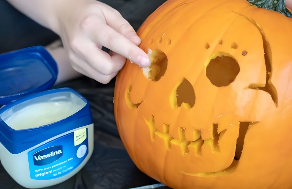 After you carve your pumpkin, rub Vaseline onto its innards, covering the inside and any exposed “flesh” with the jelly. This will lessen the pumpkin’s exposure to air, increasing its life expectancy and preventing it from rotting quickly.