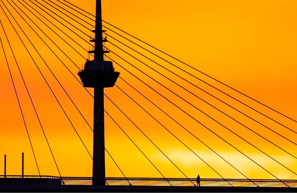There are plenty of bridges in Mannheim, Germany, and some of a truly impressive size. This bridge looks massive, particularly when compared to the tiny-looking human standing upon it. This feat of engineering welcomes millions of cars and pedestrians a year.